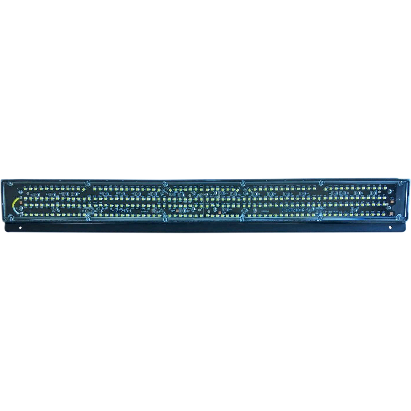 24″ Angled LED Scene Light with Black Base. 20° Angled base and wide angle LED’s projects light in a 140° vertical arc, placing usable light immediately under the lamp and far our in front of it at distances up to 100 feet. Surface mount design with powder coated aluminum base and polycarbonate lens for excellent corrosion resistance, thermal management and damage resistance. 3M VHB double sided tape strips supplied for optional no-fastener installation. High heat wiring, IP-66 rating and low profile design for the best in safety, longevity and ease of use in both interior and exterior applications.