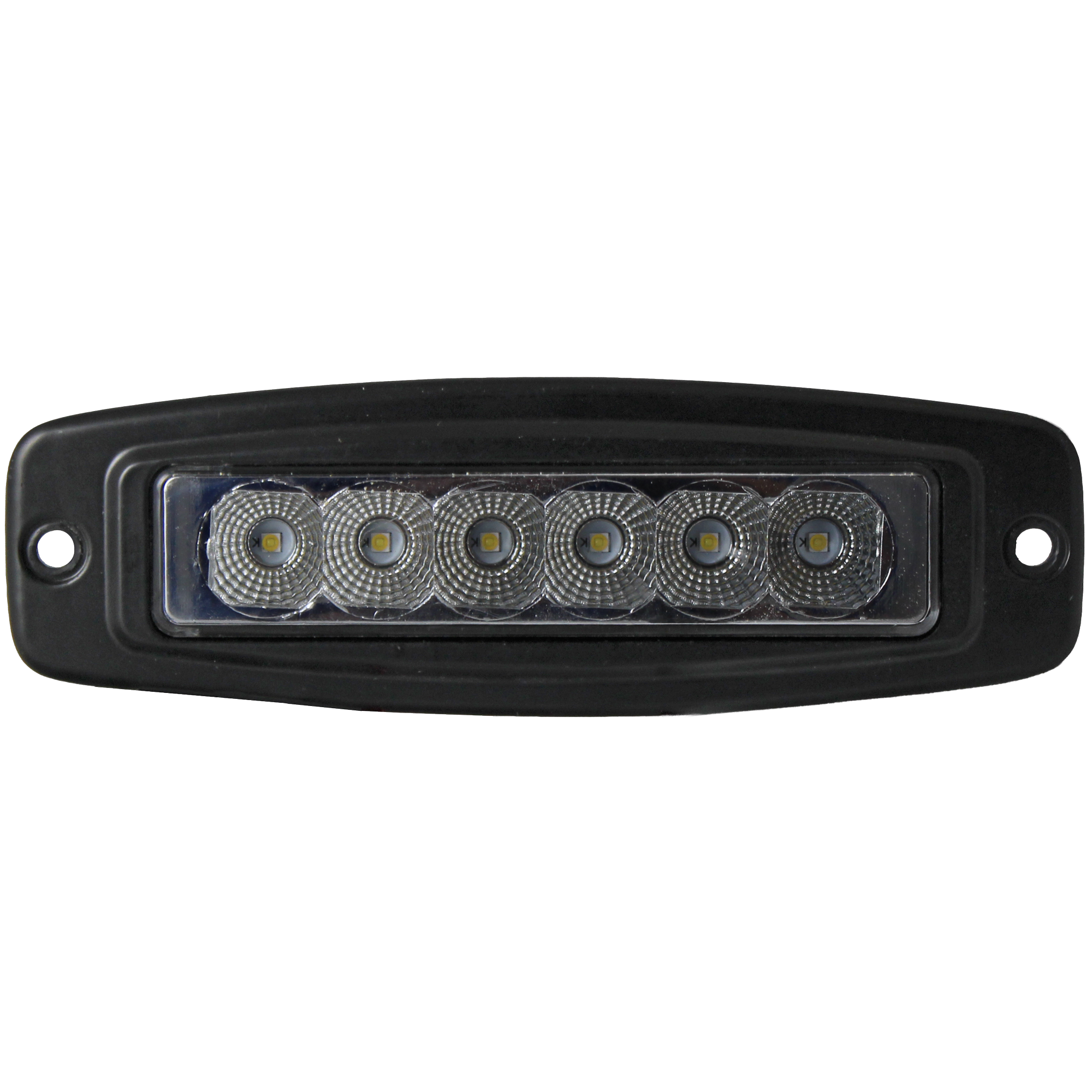Single Row Flange Mount LED Worklamp with Flood Beam. Uses 6x 3-Watt High-Efficiency LED Diodes. Jammy 14613 Series mounts in recess cutout with integrated flange. Supplied with 2mm PVC gasket. Can also be rear mounted with optional J-14613-G6 (6mm thick) Grommet. Fits tight space requirements, needing less than 1.25″ of rear clearance depth. Pre-wired with multi-conductor jacketed lead wire. Terminated with Delphi 56 Series Male (Unsealed) Connector